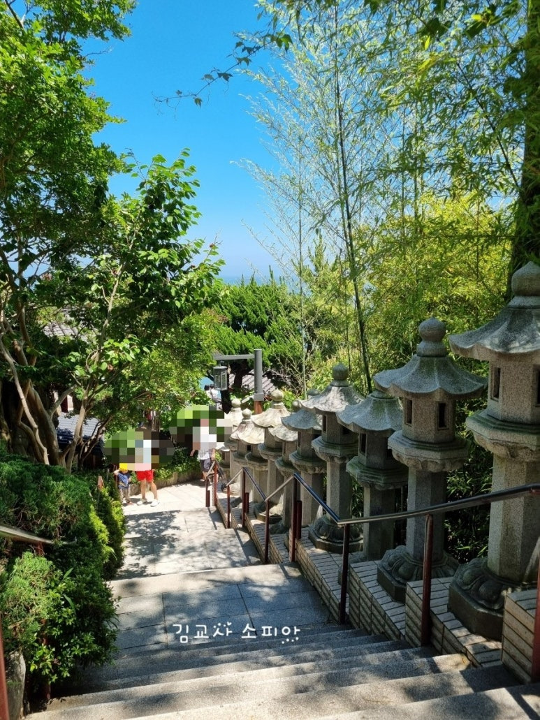 입구에는 십이지장상, 달마대사상, 교통안전기원탑이 방문객을 맞이합니다. 기원탑을 기준으로 오른쪽 방향으로 이동하면, ‘108계단’이라 불리는 돌계단이 등장합니다. 이 구간은 일방통행 구조로 되어 있어, 다른 길로는 내려갈 수 없습니다. 실제 계단 수가 정확히 108개는 아니지만, 불교에서 말하는 108번뇌를 내려놓는 상징적인 의미를 담고 있습니다. 한 걸음 한 걸음 내려가며, 마음속 복잡한 생각들을 정리해보는 것도 좋겠죠. 바다의 파도 소리가 들리는 가운데 걷는 이 계단은 묘한 집중력을 만들어줍니다.