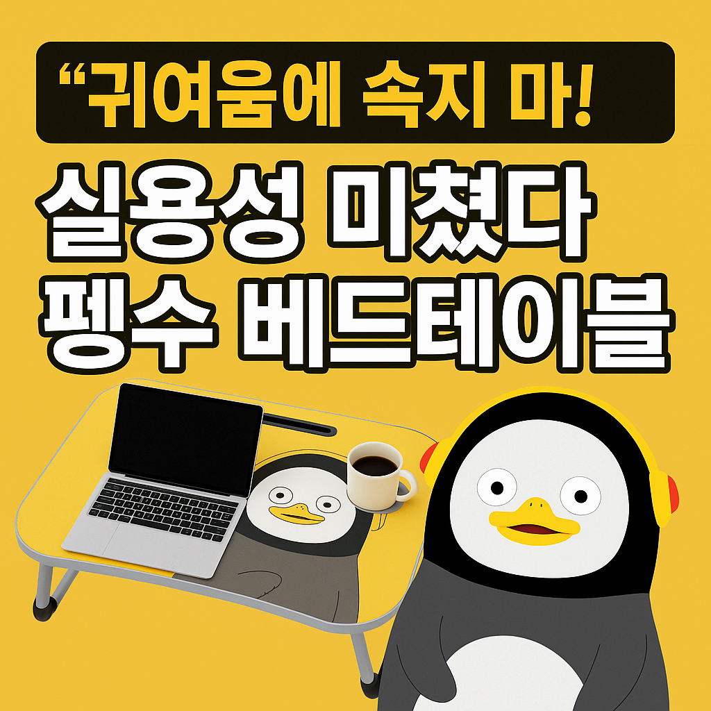 이번엔 정말 자랑 안 하고는 못 버티겠어요! 침대 위에서 노트북 작업도 하고, 간단한 식사도 하고 싶다는 생각, 한 번쯤 해보셨죠? 저도 그런 고민을 하던 중에 눈에 들어온 제품이 바로 펭수 다용도 접이식 베드테이블이었습니다. 귀여운 펭수 캐릭터에 실용성까지 갖춘 이 테이블은, 사용해 보니 기대 이상으로 만족스러워서 꼭 소개해드리고 싶었어요 😊